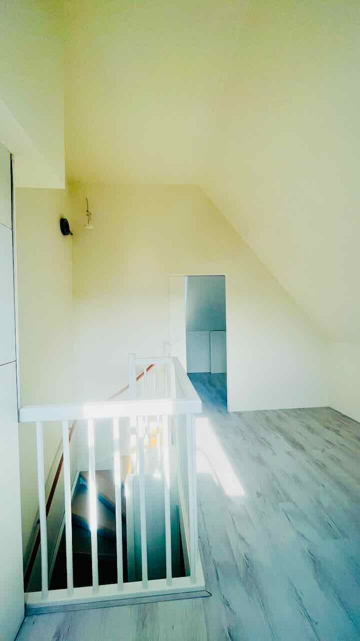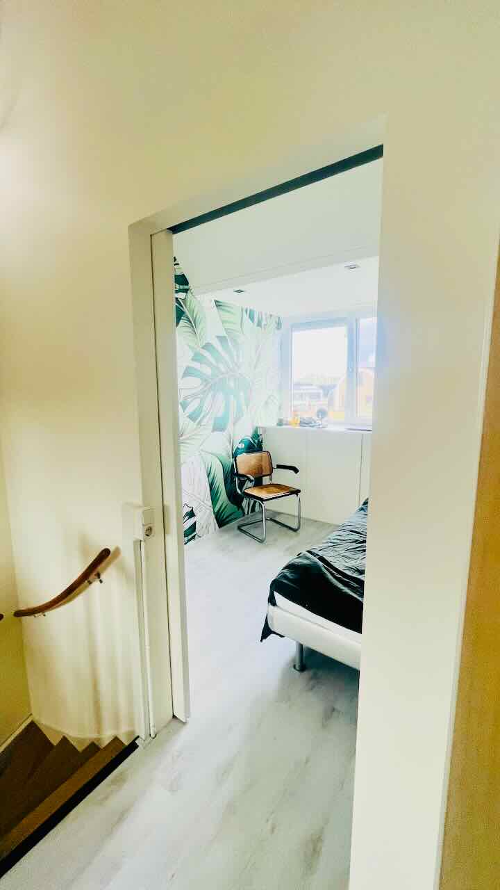 Hier heb ik een dakkapelletje afgewerkt en er een mooie slaapkamer van gemaakt door een wand met schuifdeur te plaatsen. Ook de hele zolder mooi behangen en gesausd.